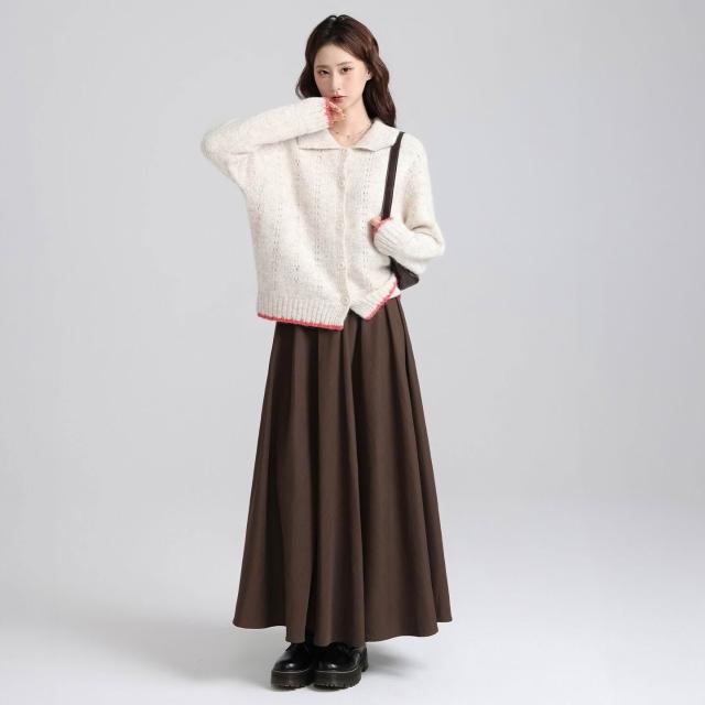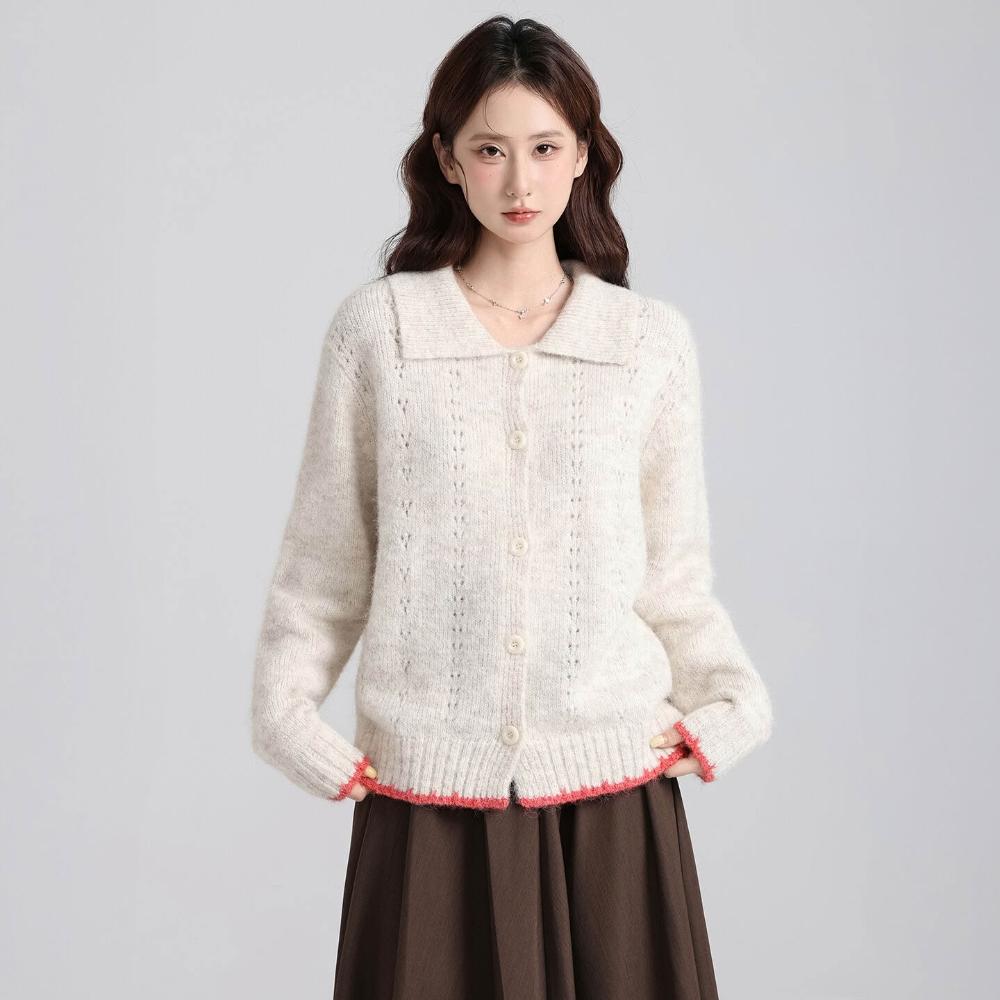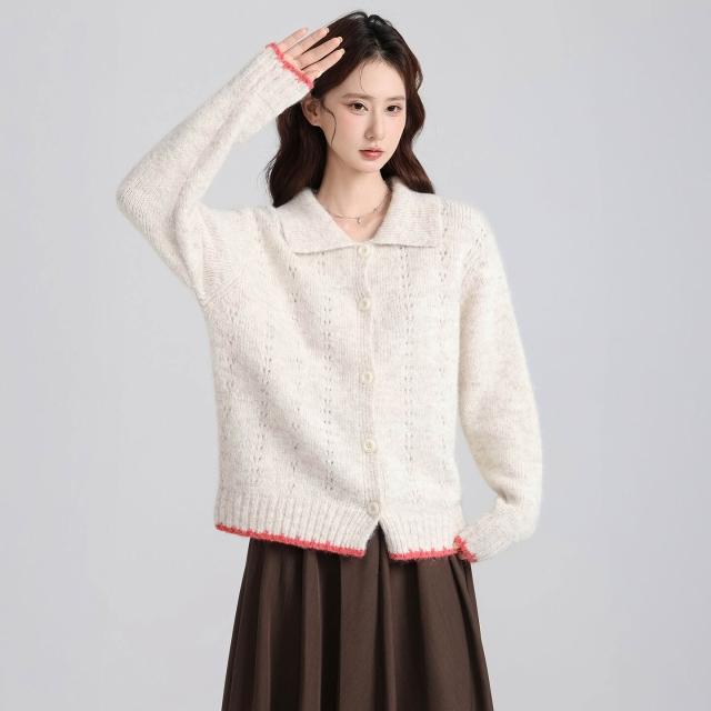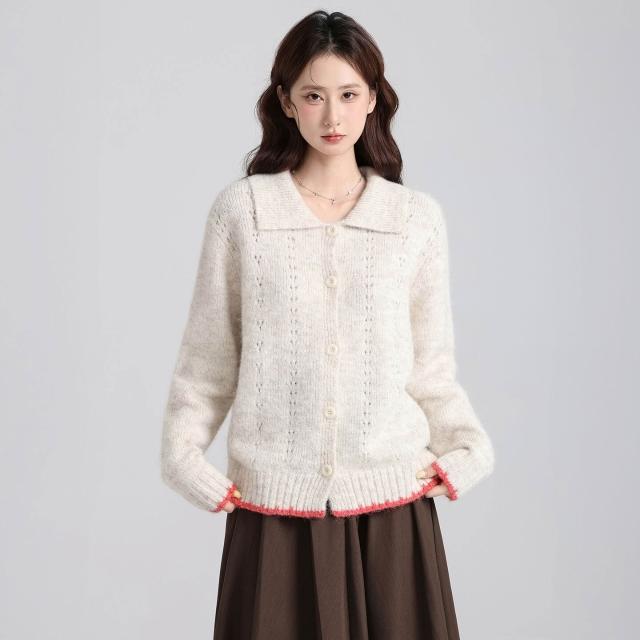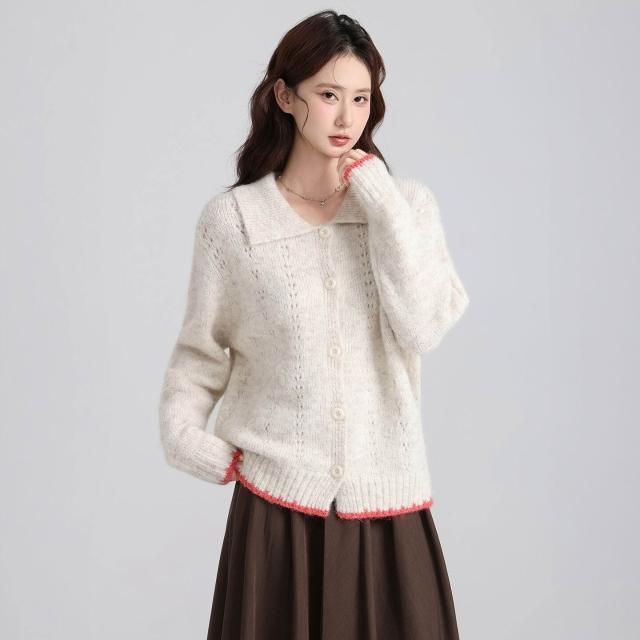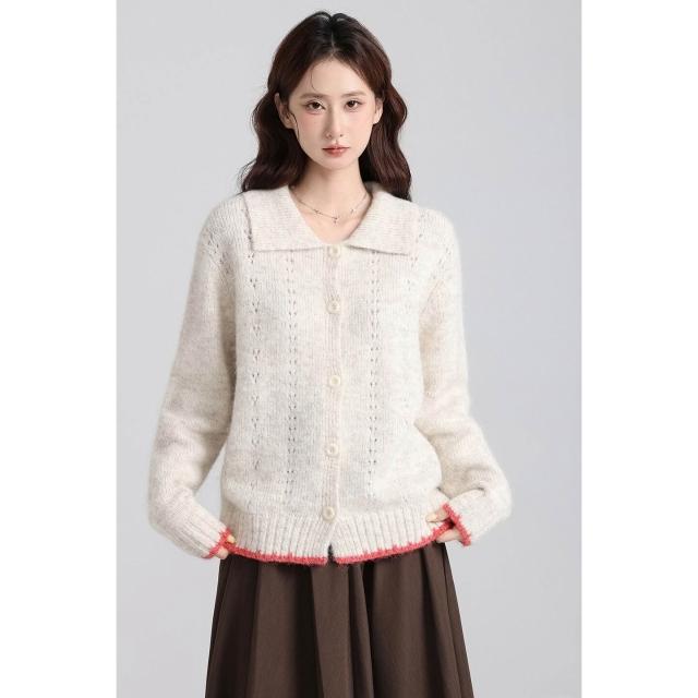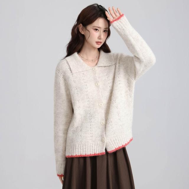 實拍實價韓系復古娃娃領撞色開衫毛衣女2025秋冬新款寬松減齡上衣
