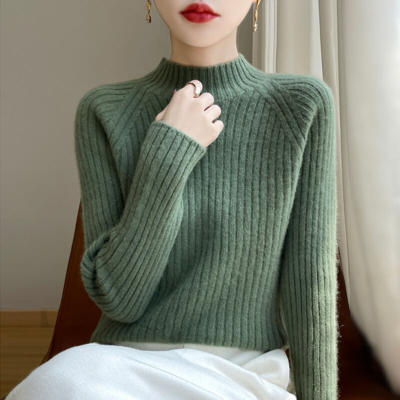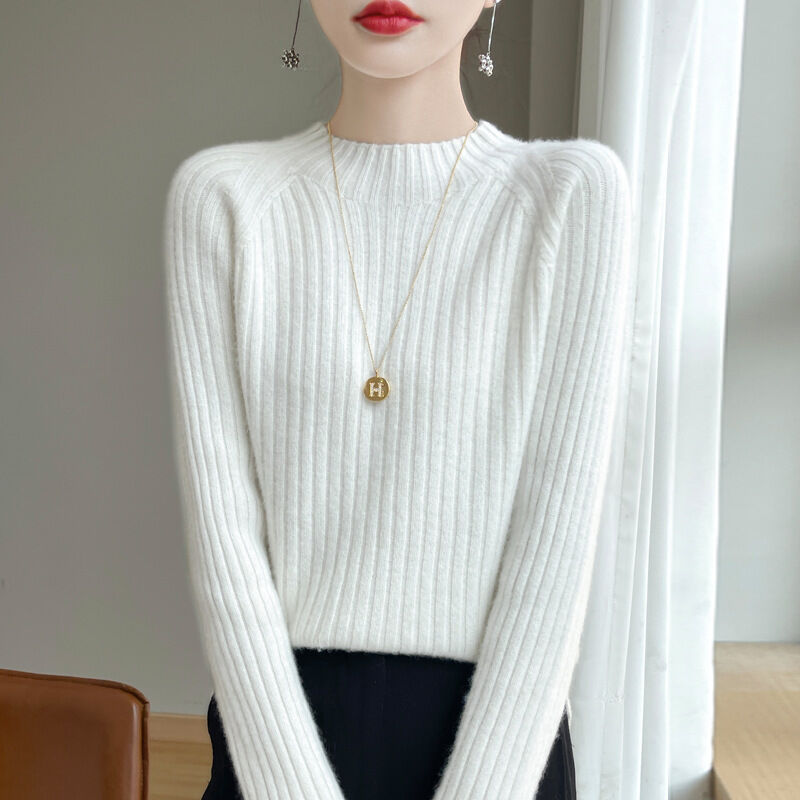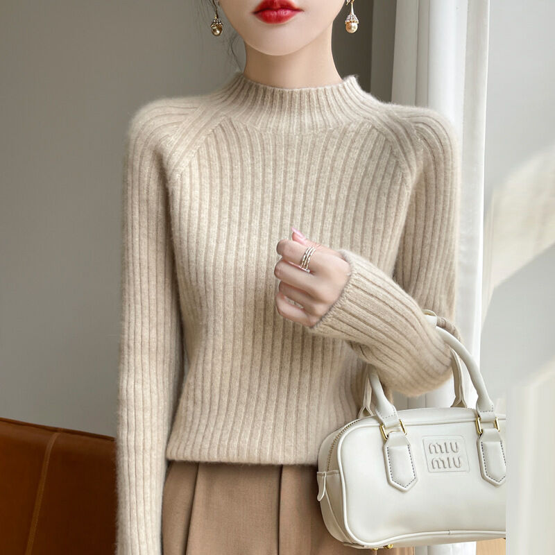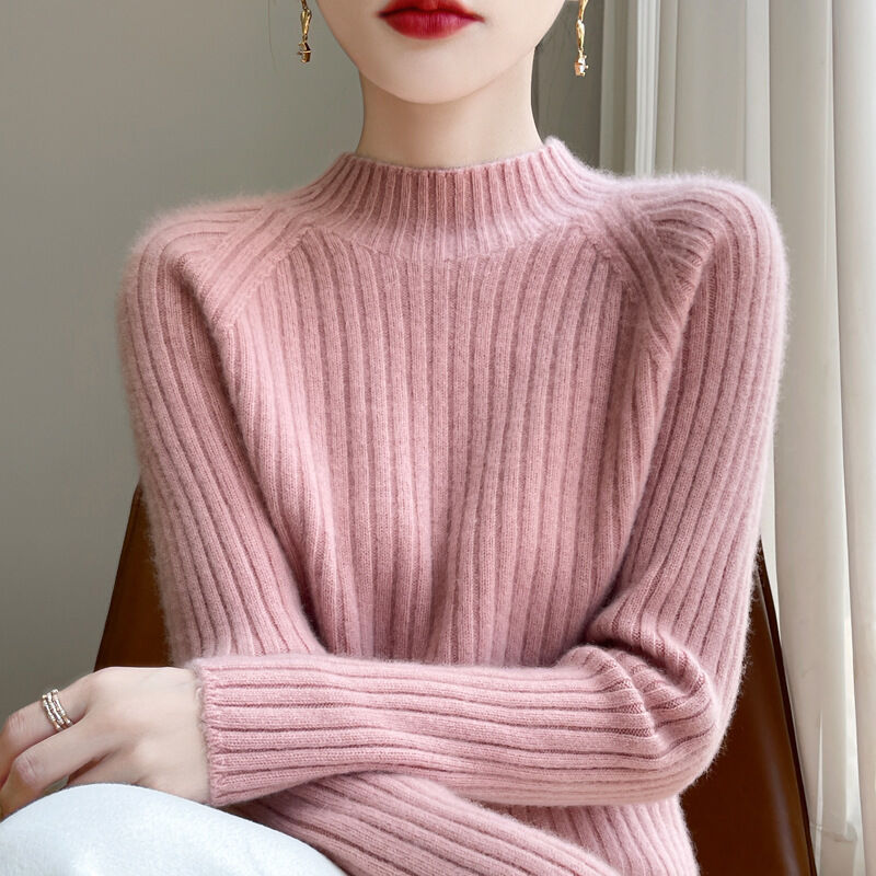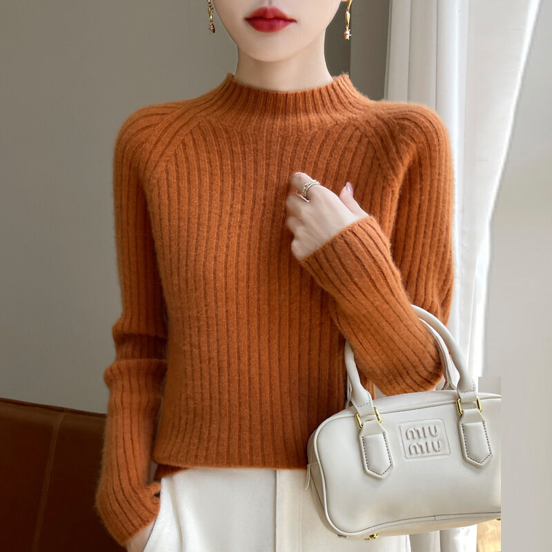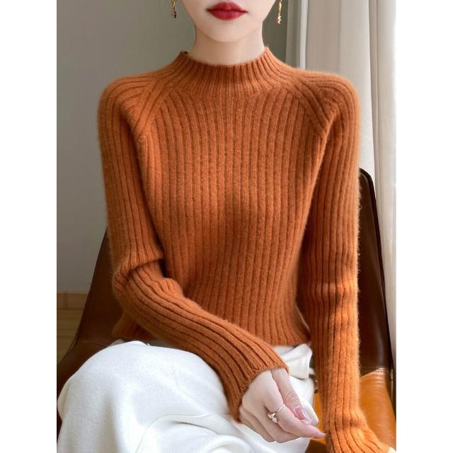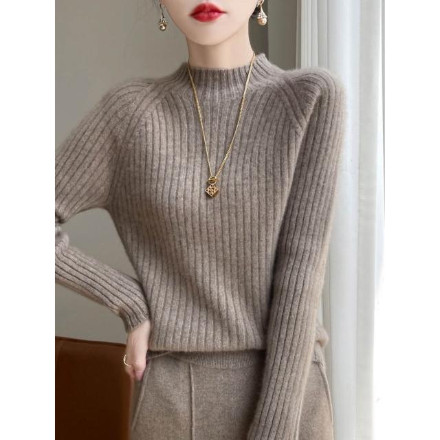 雨墨 秋冬新款100羊毛衫半高領女寬松厚款顯瘦打底上衣套頭羊絨針織衫