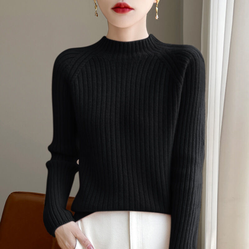 雨墨 秋冬新款100羊毛衫半高領女寬松厚款顯瘦打底上衣套頭羊絨針織衫