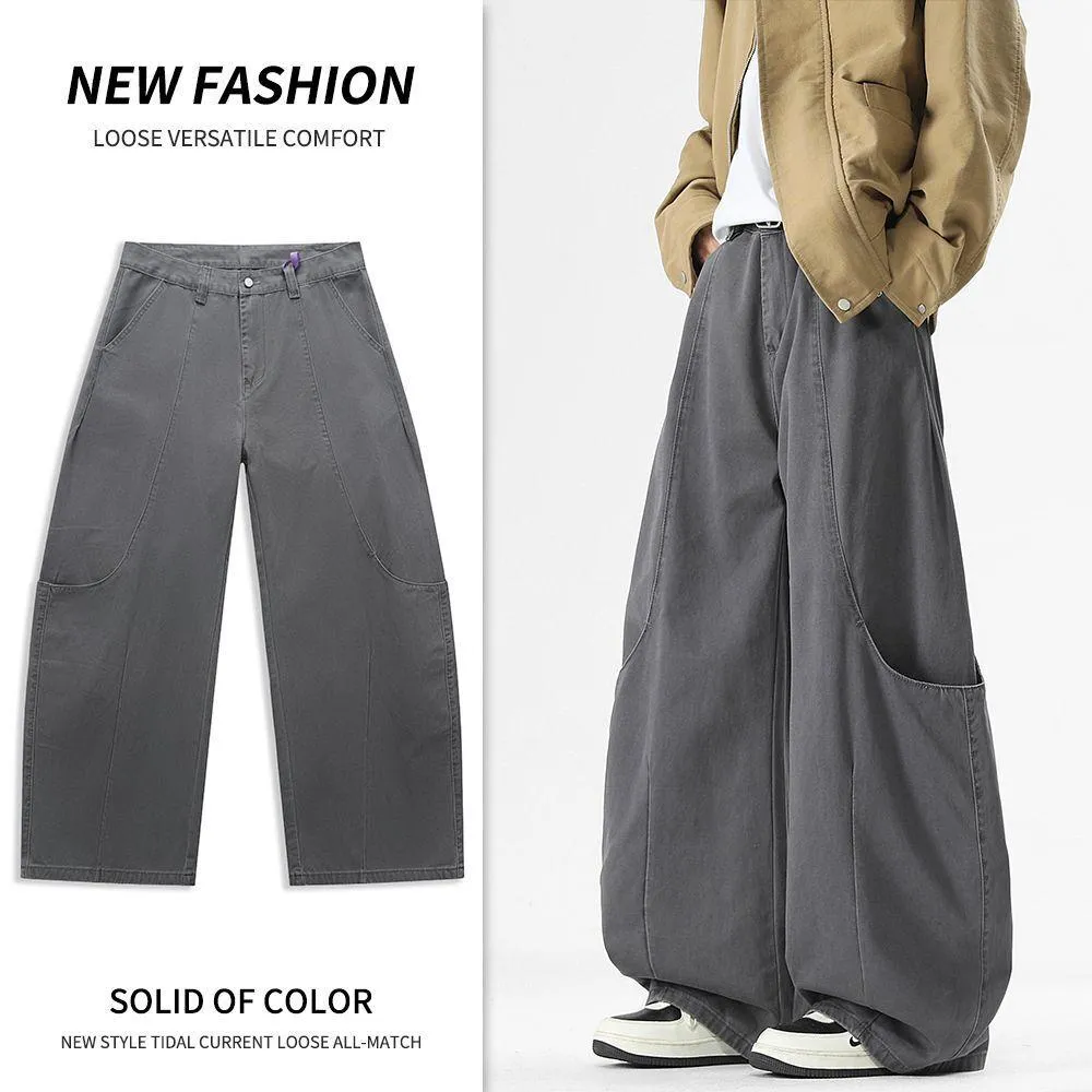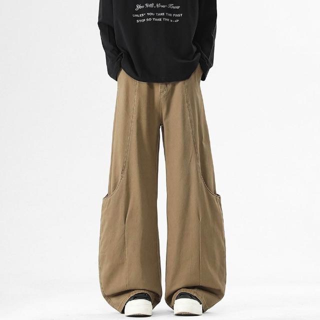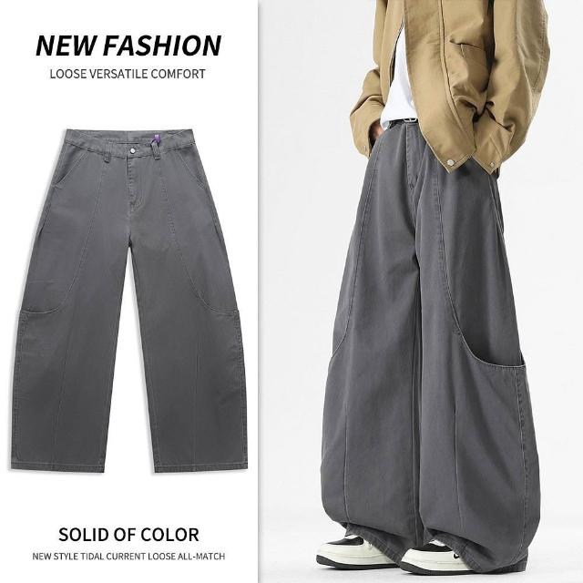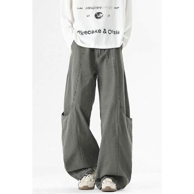 美式復古彎刀色布牛仔男女款寬松cleanfi闊腿垂感純棉水洗休閑褲