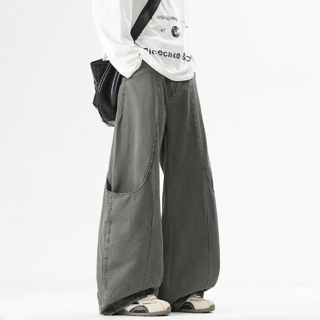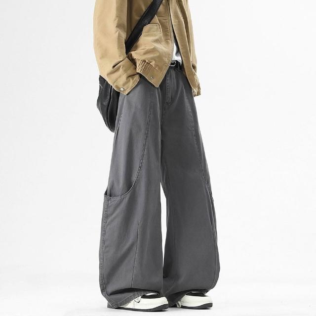 美式復古彎刀色布牛仔男女款寬松cleanfi闊腿垂感純棉水洗休閑褲