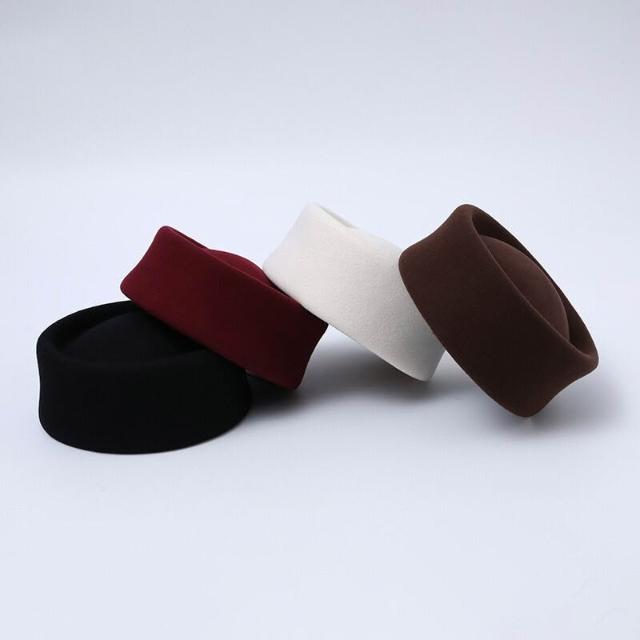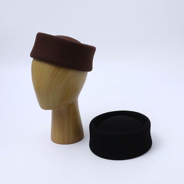雨墨精品 秋冬新款羊毛盆帽女高級空姐貝雷帽子法式赫本風復古小禮帽藥盒帽