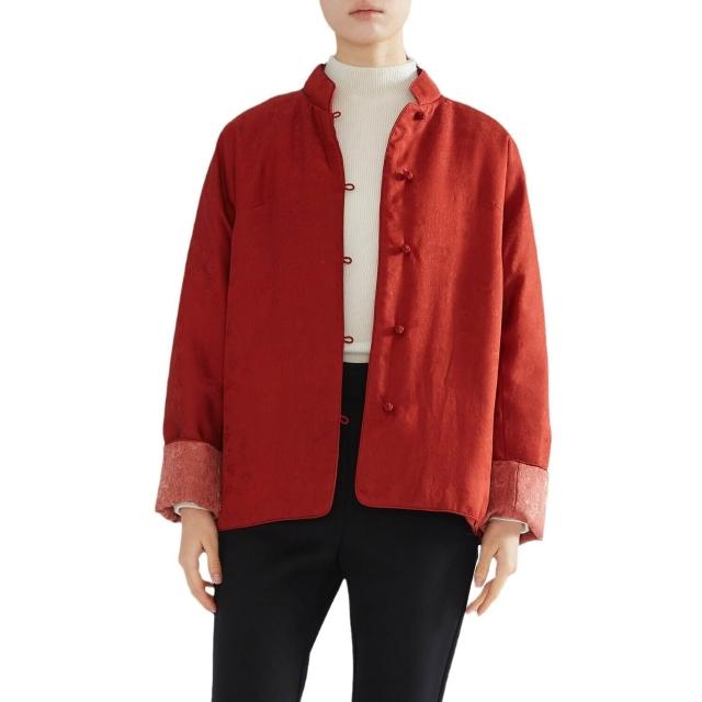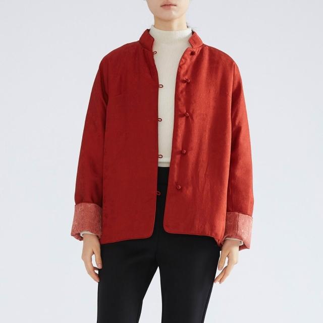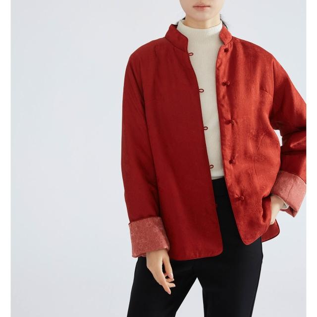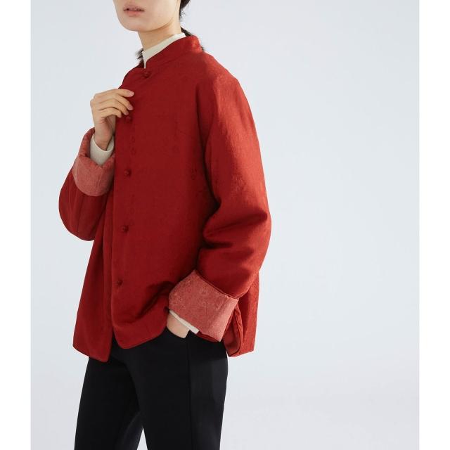 雨墨 輕奢桑蠶絲紅雲紗絲綿棉服 喜慶中國紅色新中式棉襖外套