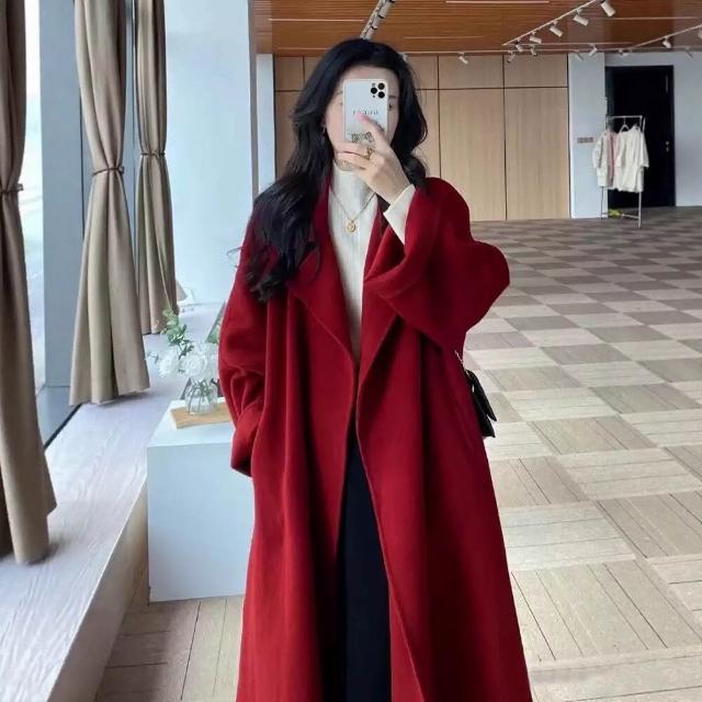 雨墨 西西裏紅色雙面羊毛大衣女長款秋冬新款寬松高級感羊毛呢外套