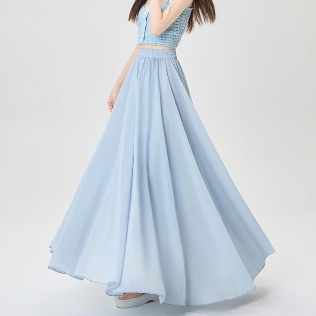 實拍 雪紡半身裙女2025夏季松緊高腰顯瘦垂感a字大擺傘裙百褶長裙