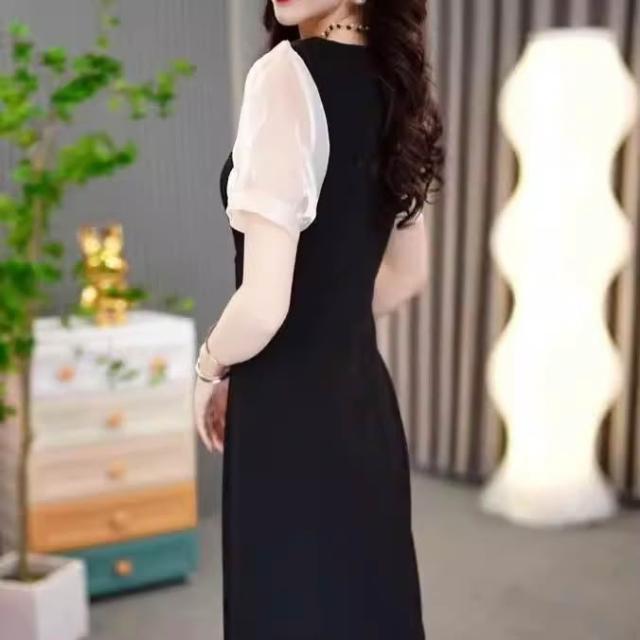 2026年夏季新款氣質碎花拼接小黑裙女韓版收腰顯瘦修身百搭連衣裙
