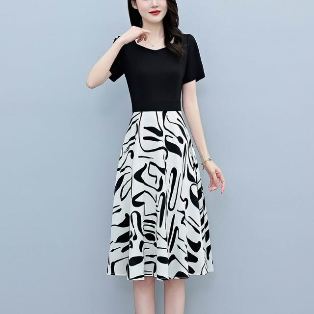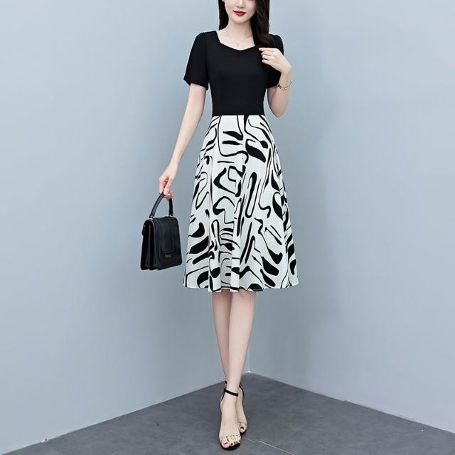2026夏季新款高檔拼接連衣裙大碼胖mm收腰顯瘦遮肚長裙