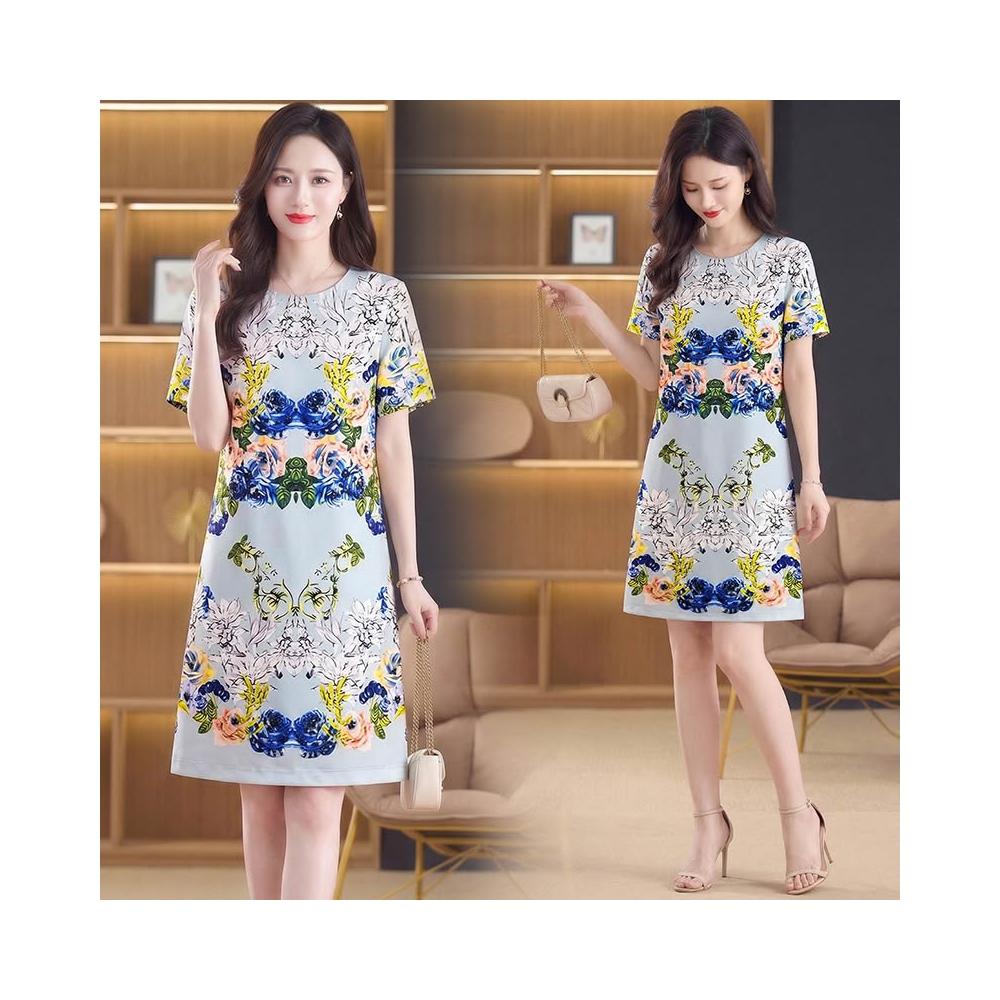 唯美風時尚藍色玫瑰定位印花裙2026夏季女裝高級感舒適釘珠連衣裙