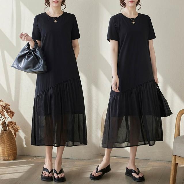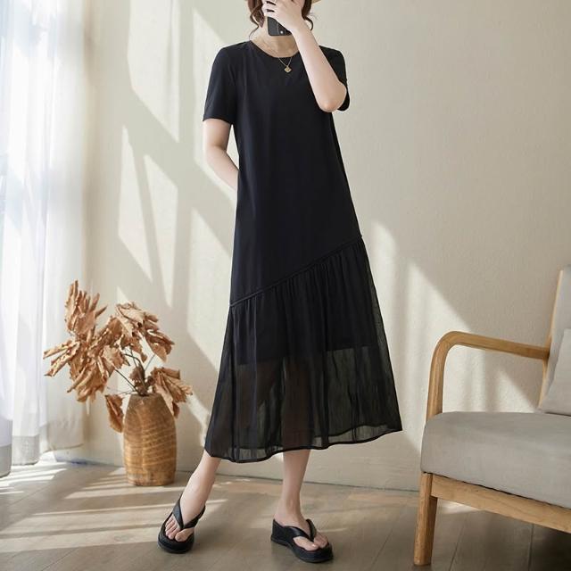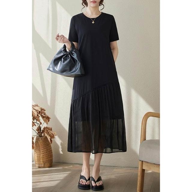 實拍2026夏新小黑裙桑蠶絲麻長絨棉氣質連衣裙春夏女高級感裙子