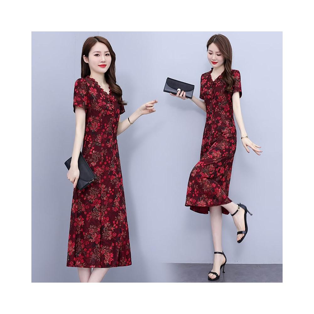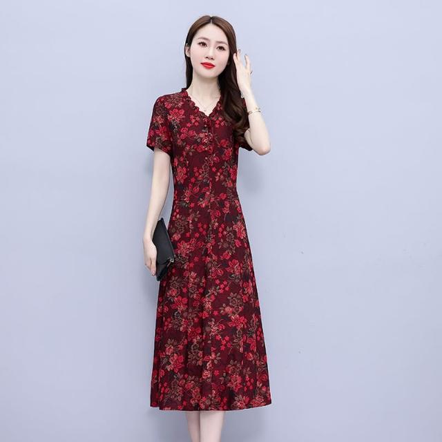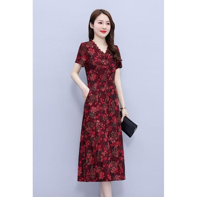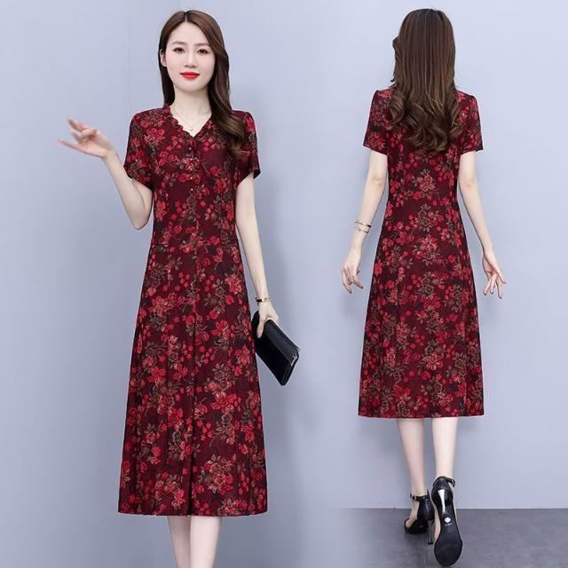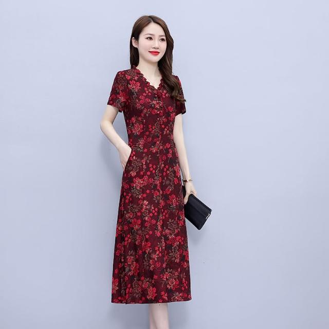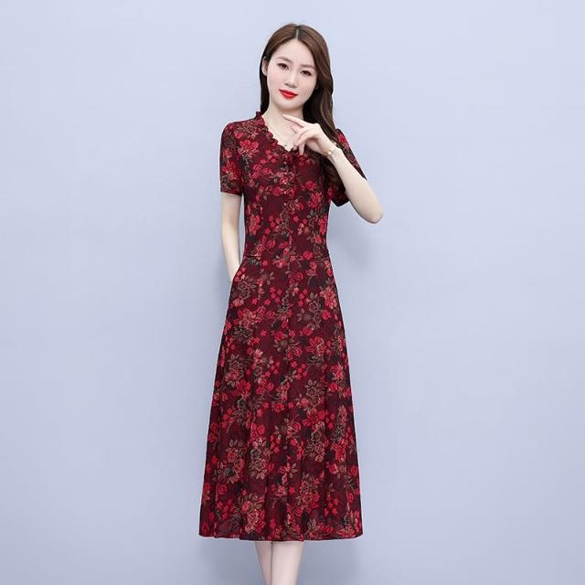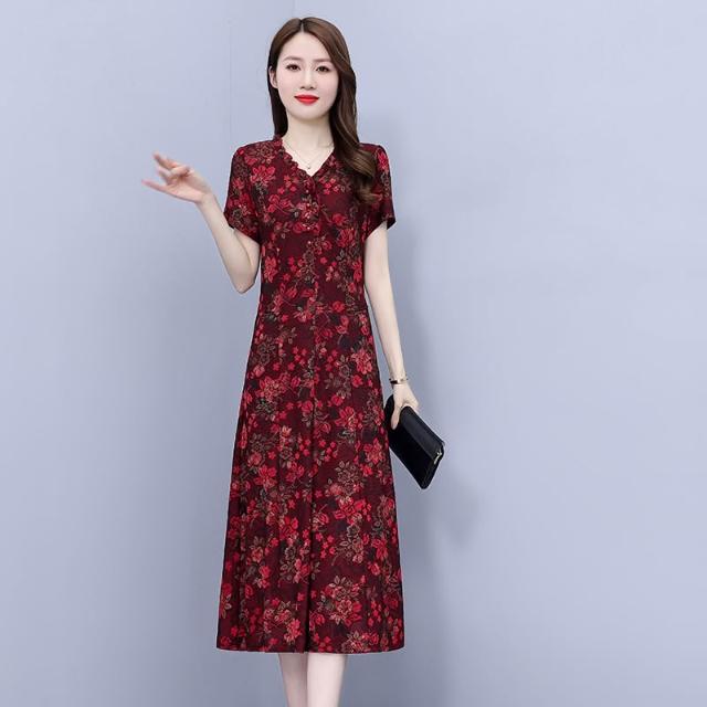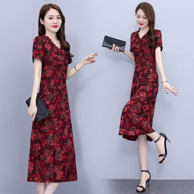 高端奢華高貴夫人闊太太收腰顯瘦碎花連衣裙子夏天媽媽洋氣減齡