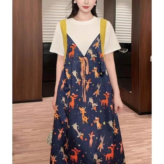 時尚老錢風減齡法式短袖裙子女2026夏新款休閑風假兩件印花連衣裙