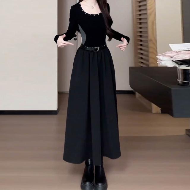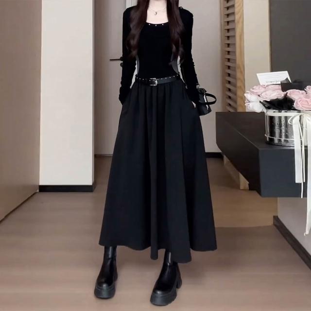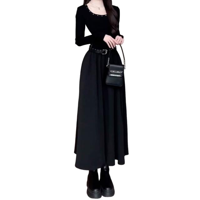 法式赫本風黑色長袖針織連衣裙子女2025秋季新款收腰顯瘦氣質長裙