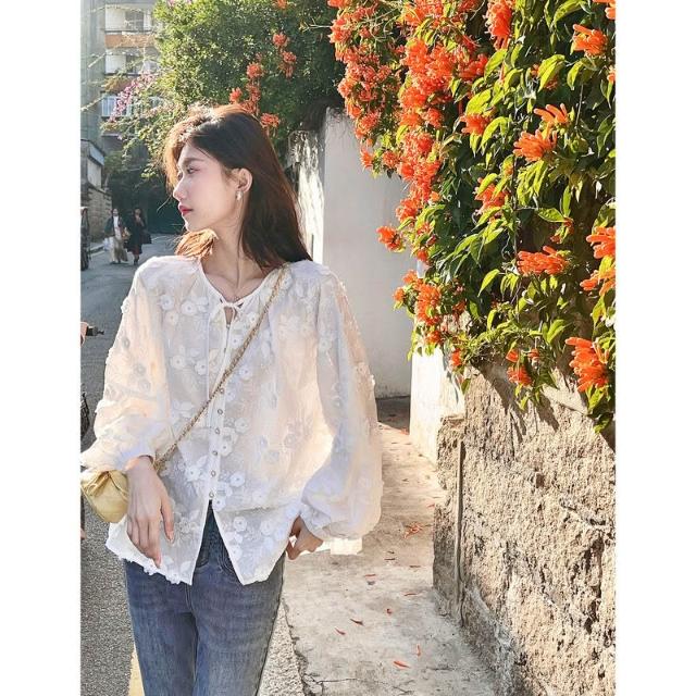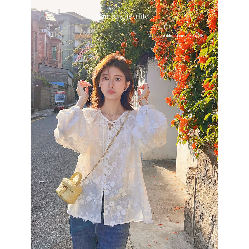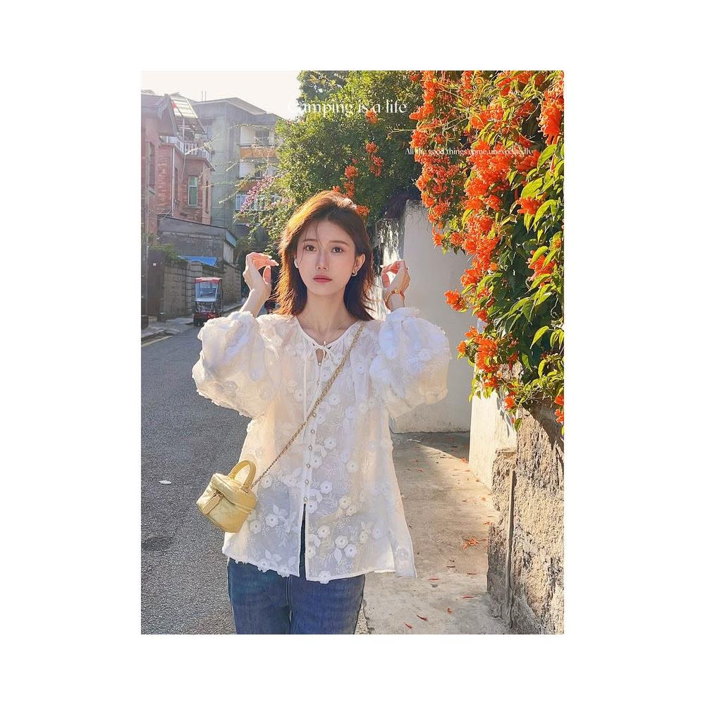 設計感泡泡袖白襯衫溫柔風甜美法式小眾別致上衣減齡漂亮小衫春款
