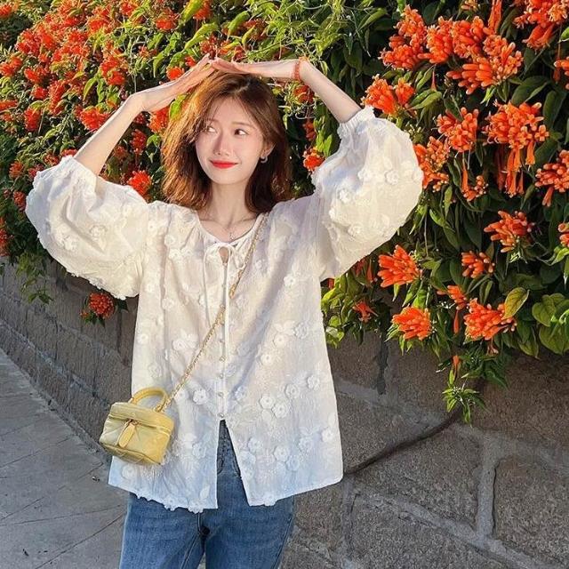 設計感泡泡袖白襯衫溫柔風甜美法式小眾別致上衣減齡漂亮小衫春款