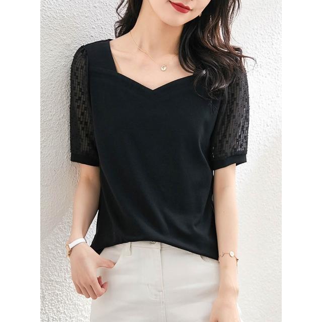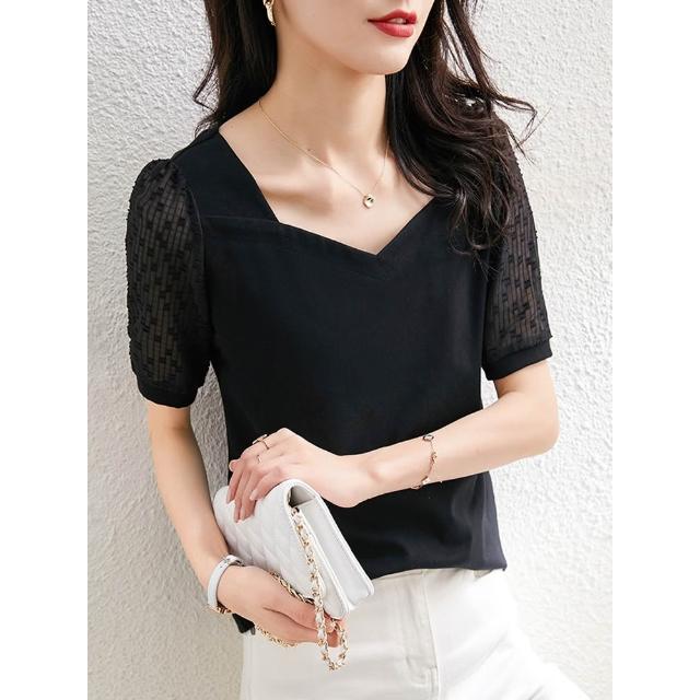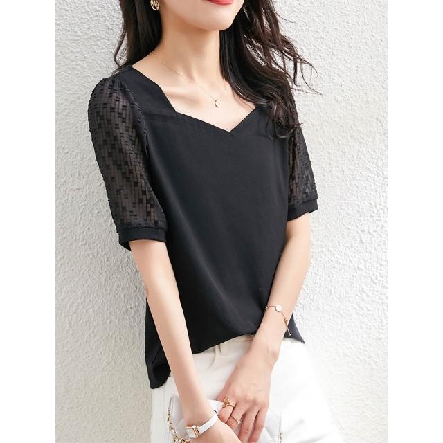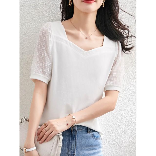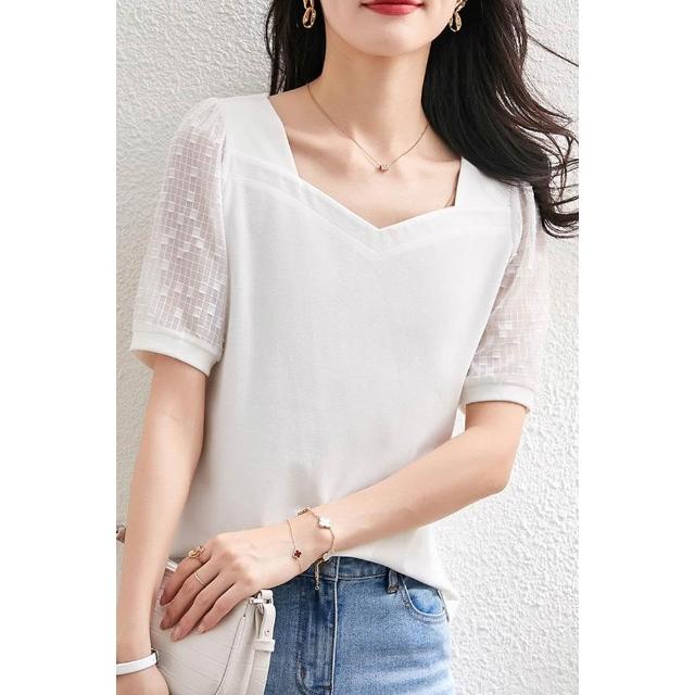 法式方領短袖t恤女2026夏季新款寬松半袖百搭顯瘦露鎖骨體恤上衣