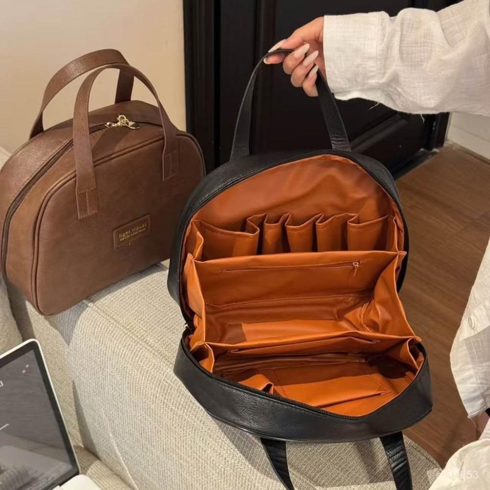 輝輝優選 2025新款油蠟皮複古化妝包女大容量時尚高級感便攜旅行護膚收納包