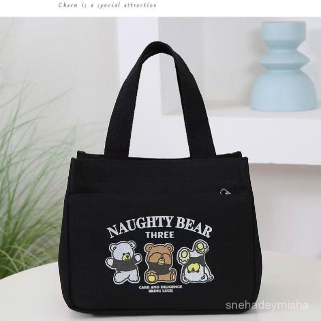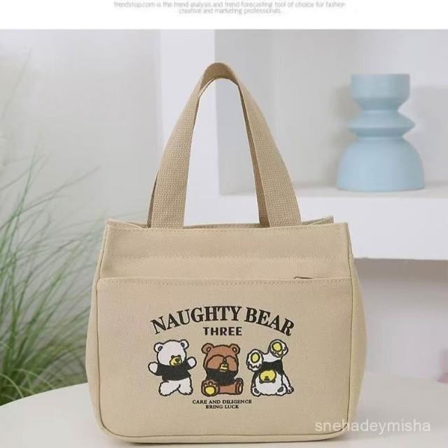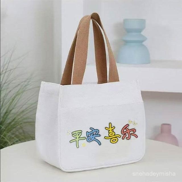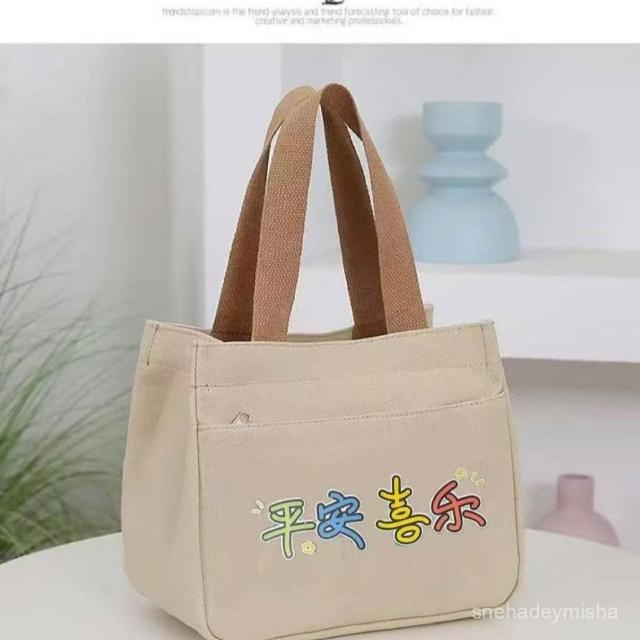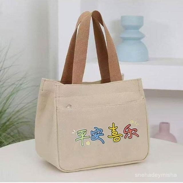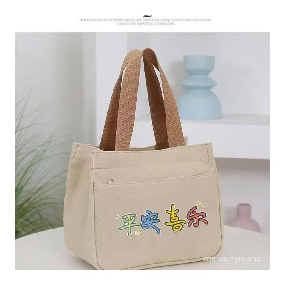 躍躍甄選 新款帆布包手拎包大容量手提包飯盒簡約上班族學生百搭便噹媽咪
