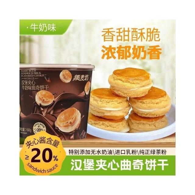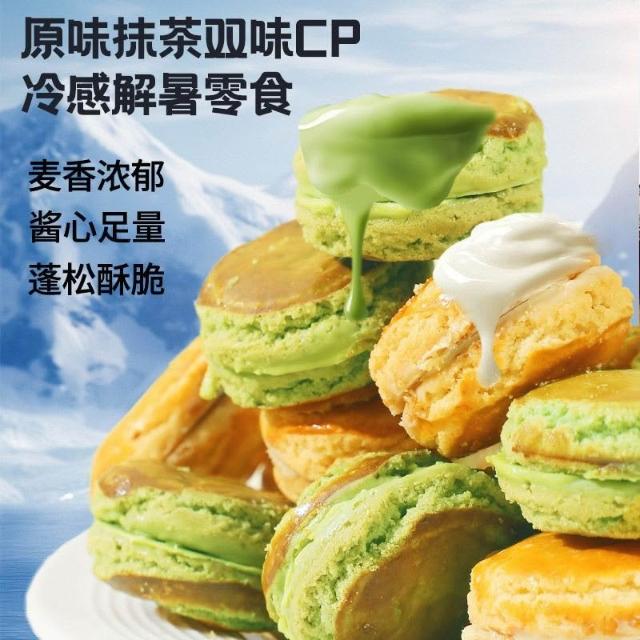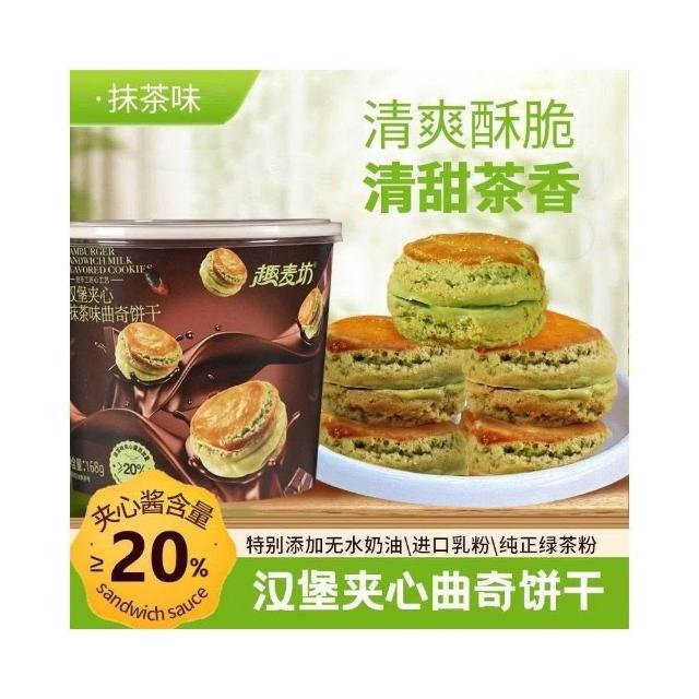 網紅新品冰淇淋曲奇漢堡早餐夾心餅幹牛奶味抹茶味夏日解饞小零食