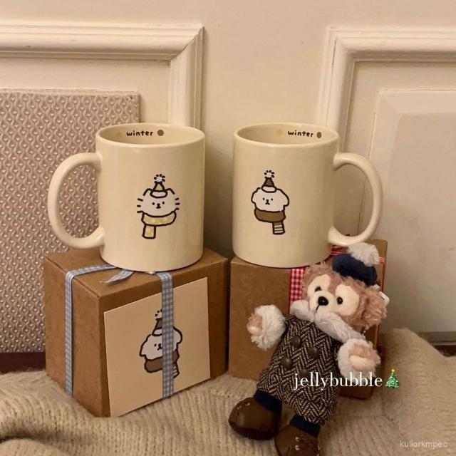 躍躍精選 潮流小貓小狗陶瓷杯ins卡通早餐家用可愛馬克杯生日禮物情侶款