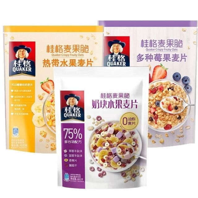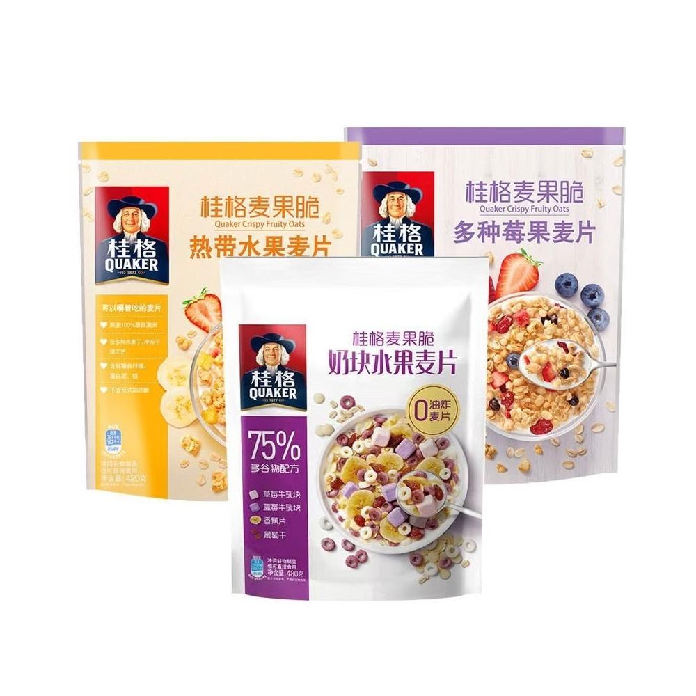 輝輝精選 桂格麥果脆草莓牛乳多種莓果水果穀物卽食烘焙麥片衝飲營養代餐