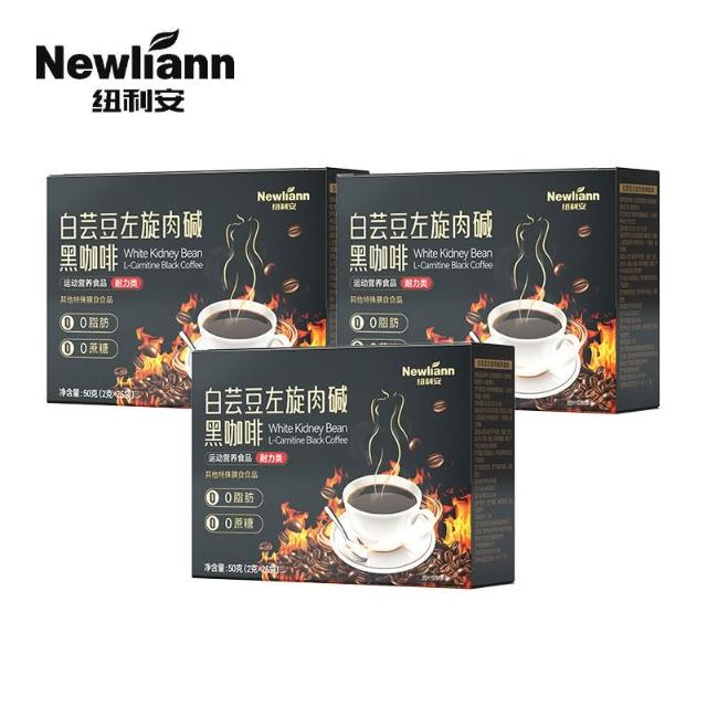 輝輝精選 紐利安白蕓豆左旋鹼黑咖啡25袋0脂肪0蔗糖速溶黑咖啡粉