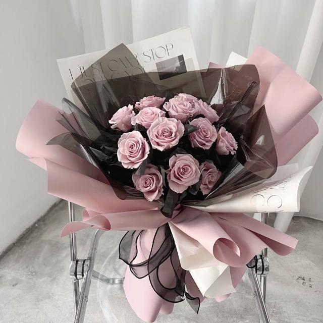 Floraflower 黑粉色永生花花束〖浪漫花束〗情人節 520 七夕 畢業 告白 精美 質感 高級 禮物 玫瑰花