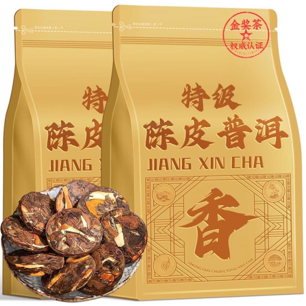 躍躍精選 正品陳皮普洱茶新會雲南宮廷普洱茶熟茶陳年普洱茶緊壓小茶餅袋裝