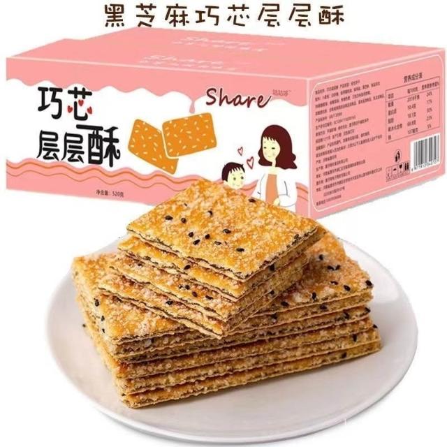 躍躍精選 黑芝麻層層酥刻凡薄脆餅乾8090老式爆款懷舊整箱韆層夾心辦公室