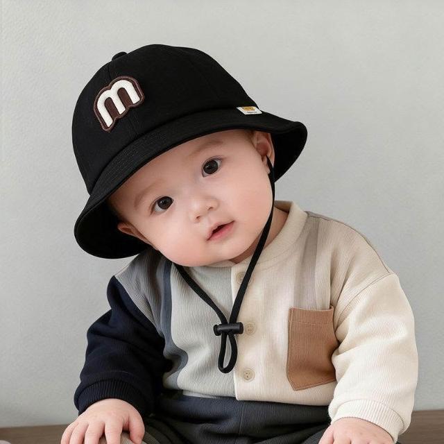 寶寶帽子春秋薄款男女童遮陽防曬帽韓版韓版潮超萌字兒漁夫帽