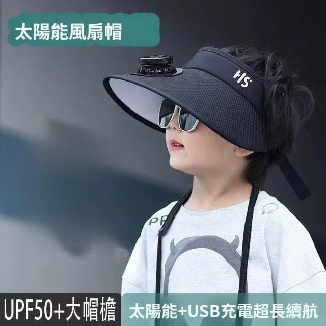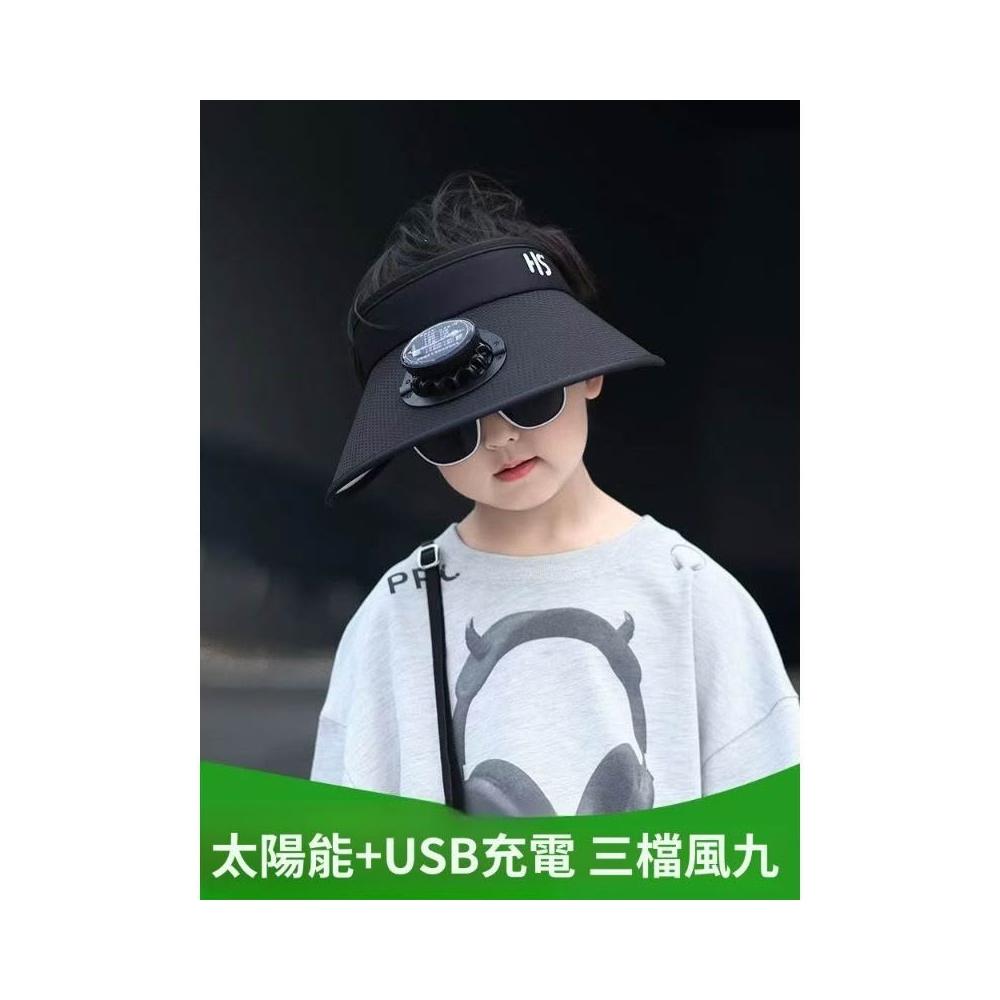 兒童太陽能充電風扇帽男女童寶寶防紫外線遮陽空頂大帽檐防曬帽子