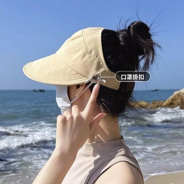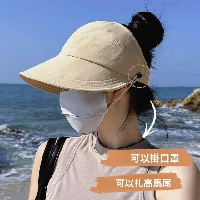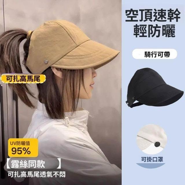 防曬帽女新款空頂扎馬尾鴨舌漁夫帽夏季戶外遮臉太陽帽子防紫外線