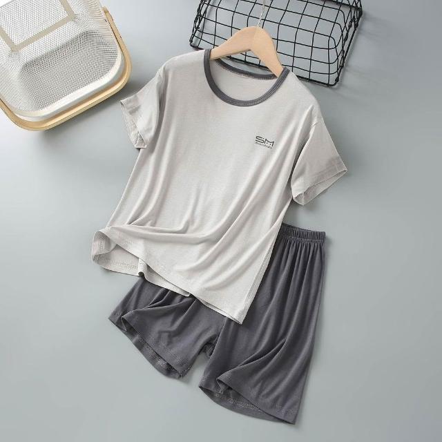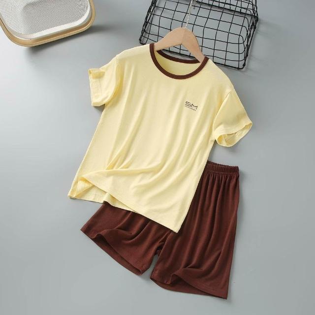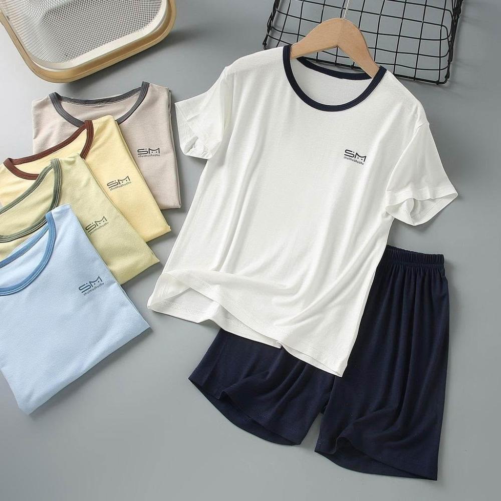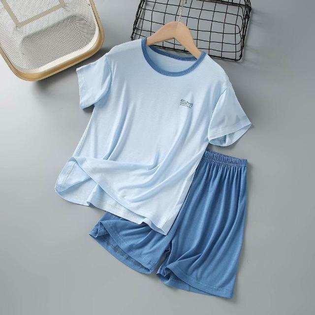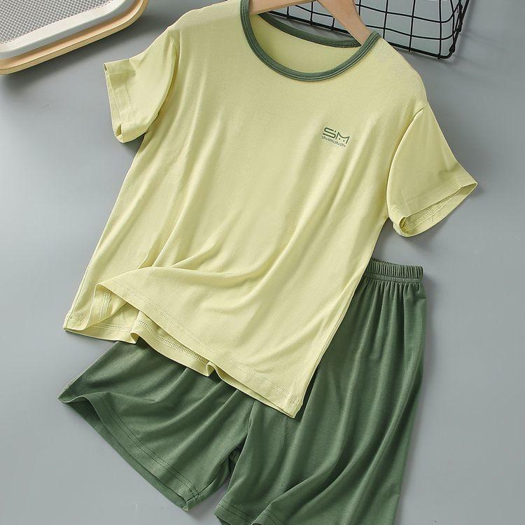 兒童莫代爾家居服中大童夏季薄款睡衣男童短袖套裝男孩空調服女童