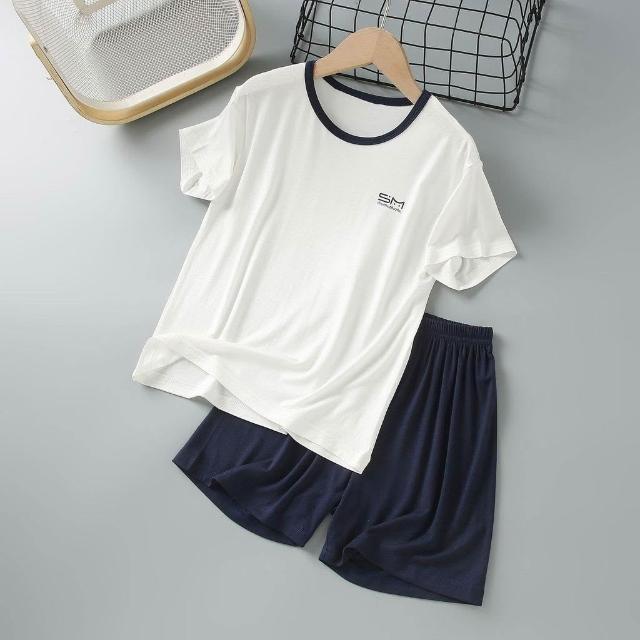 兒童莫代爾家居服中大童夏季薄款睡衣男童短袖套裝男孩空調服女童
