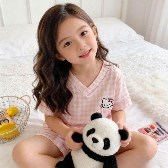 中大童可愛卡通雲朵棉空調服女童寶寶夏季新款短袖短褲家居服套裝