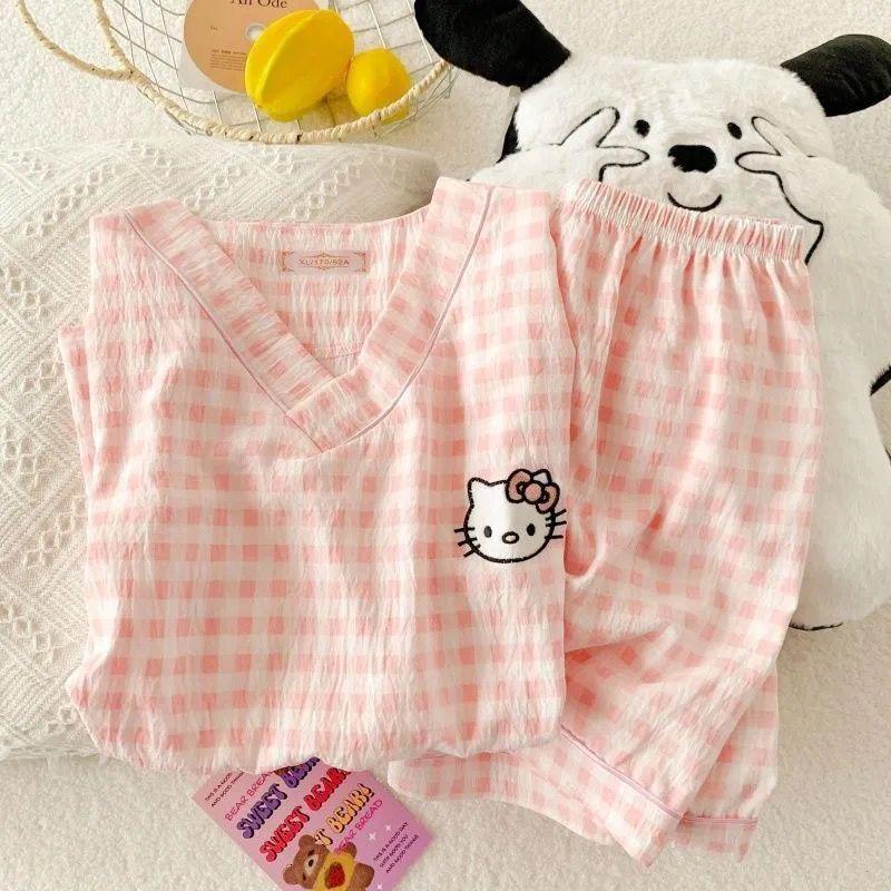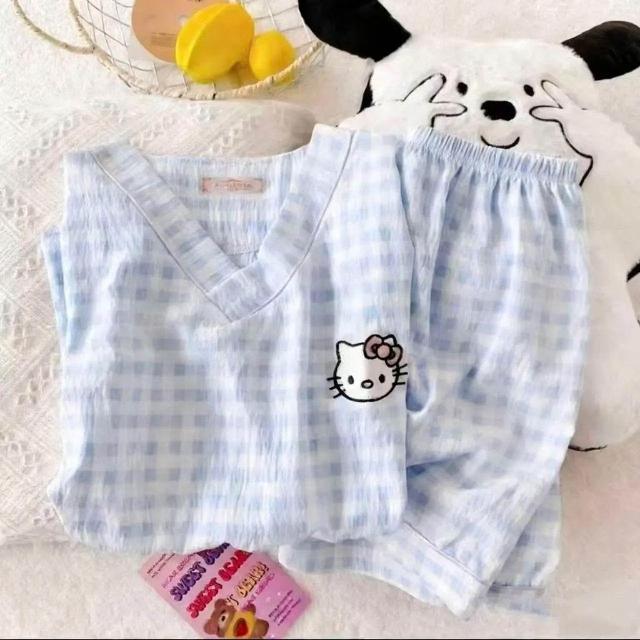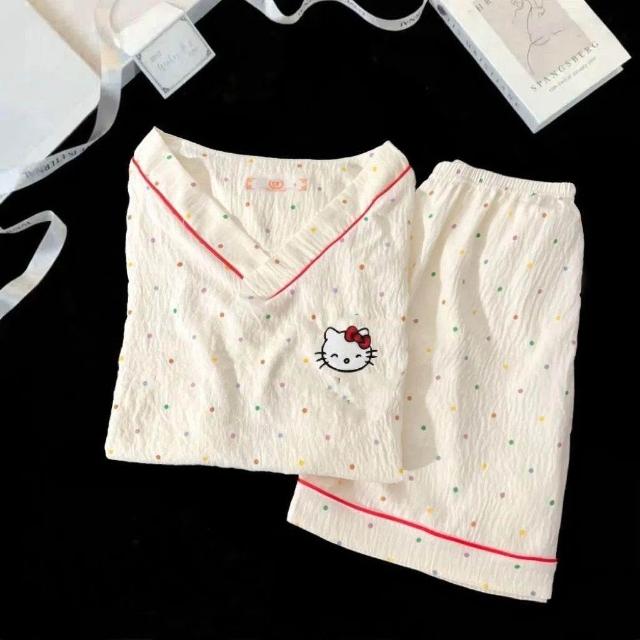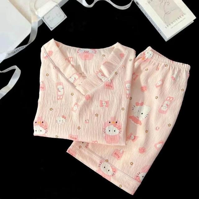 中大童可愛卡通雲朵棉空調服女童寶寶夏季新款短袖短褲家居服套裝