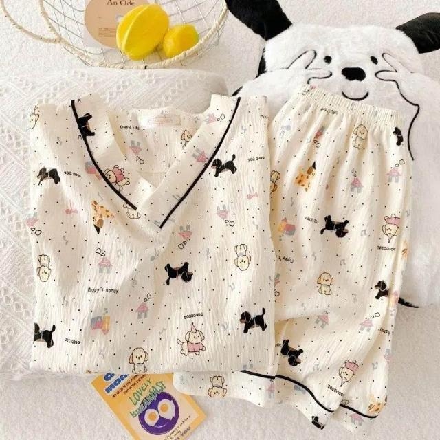 中大童可愛卡通雲朵棉空調服女童寶寶夏季新款短袖短褲家居服套裝
