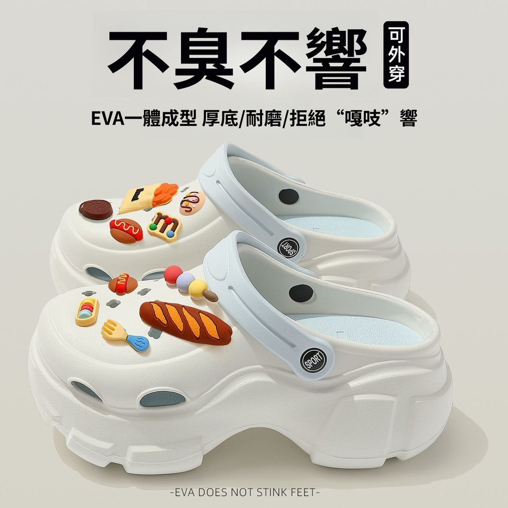 孕婦足弓支撐洞洞鞋女款夏季外穿厚底增高包頭eva防滑防臭涼拖鞋