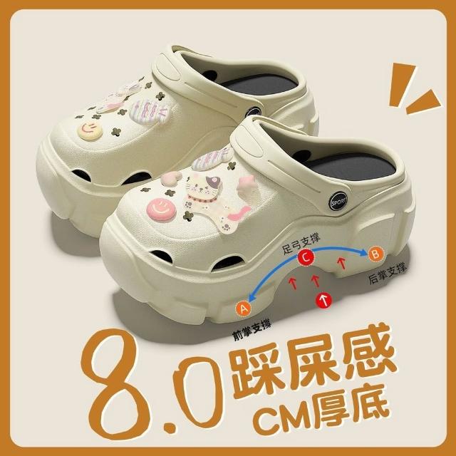 孕婦足弓支撐洞洞鞋女款夏季外穿厚底增高包頭eva防滑防臭涼拖鞋
