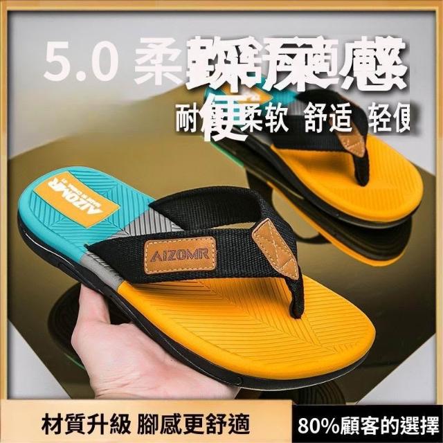 東東2025戶外潮流時尚外穿百搭輕便超軟底加厚耐磨男士人字拖鞋情侶款
