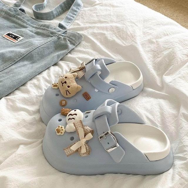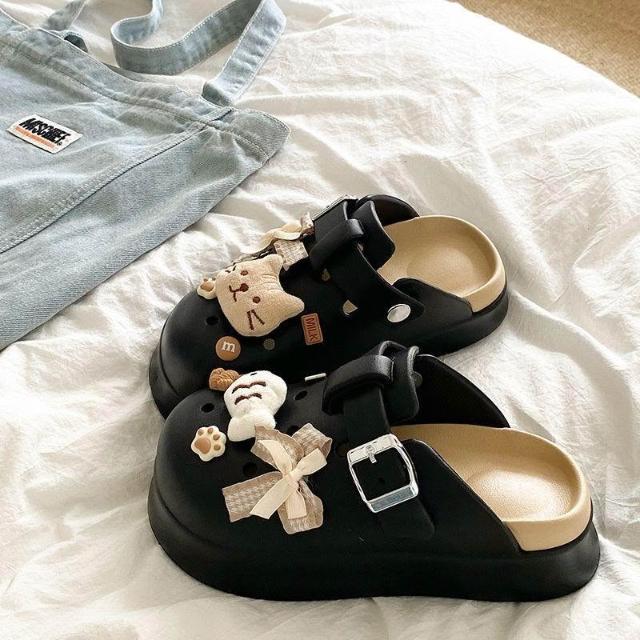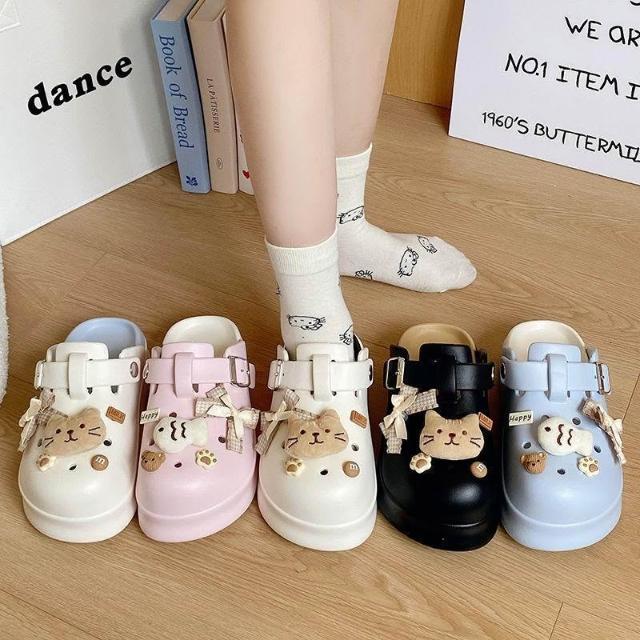 爆款可愛貓咪小魚蝴蝶結洞洞鞋女夏季外穿厚底EVA勃肯包頭拖鞋女