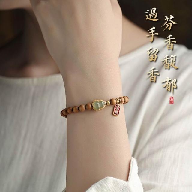 印度天然老山檀香手串女男本命年禮物盤玩小衆木質佛珠手鍊復古風