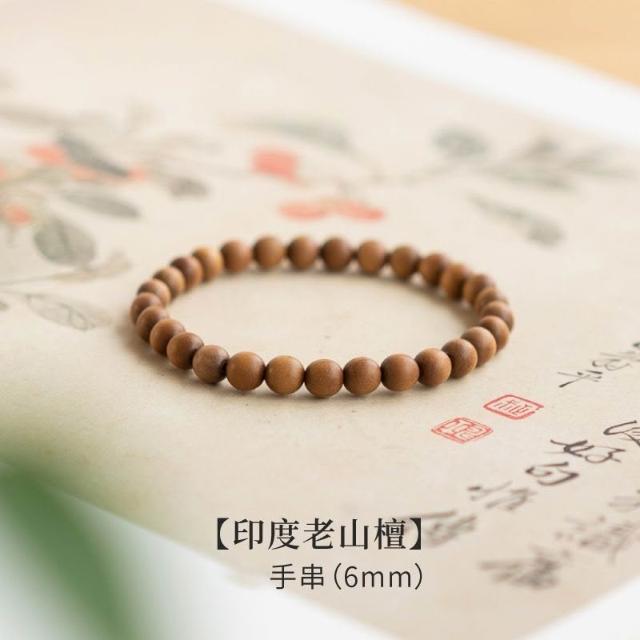 印度天然老山檀香手串女男本命年禮物盤玩小衆木質佛珠手鍊復古風
