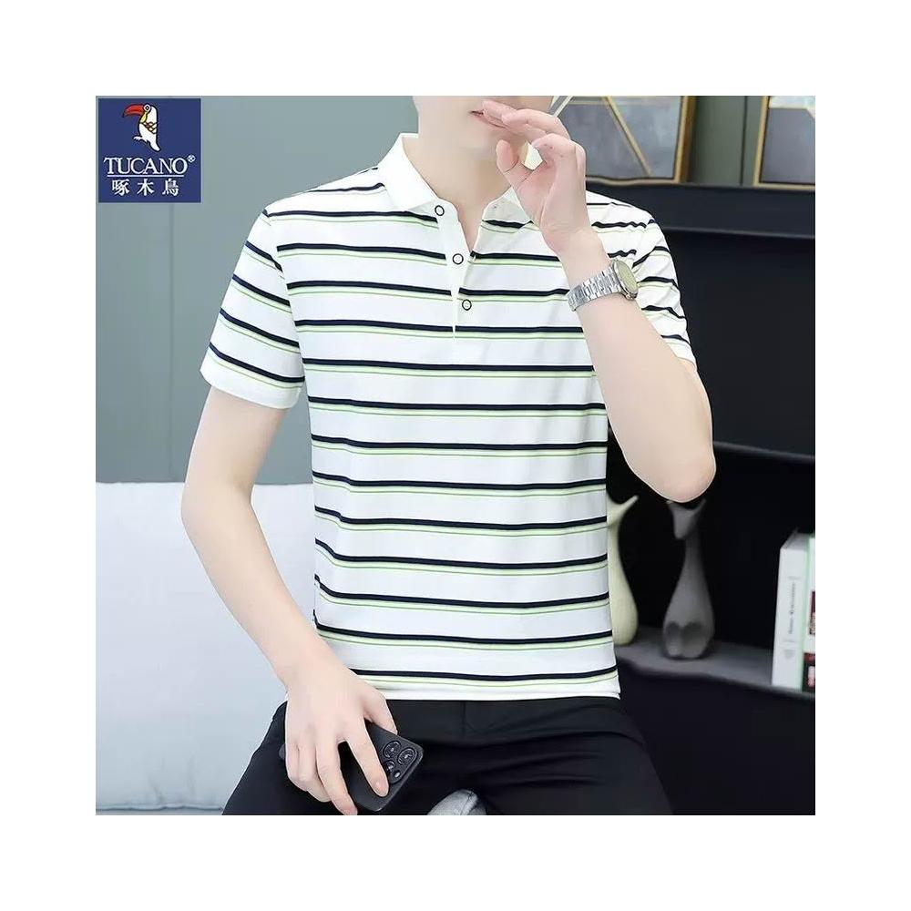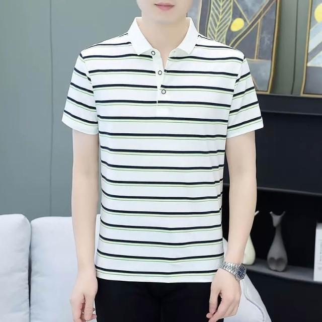 啄木鳥夏季條紋短袖T恤男商務休閒POLO衫男士青年韓版修身上衣t恤