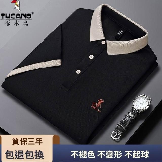 啄木鳥男士時尚短袖夏季翻領新款刺繡POLO衫寬鬆高級休閒半袖上衣