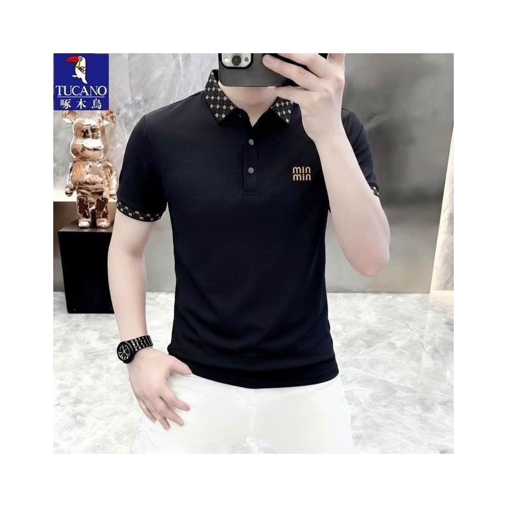 啄木鳥夏季男士短袖polo衫韓版修身潮流休閒日常百搭翻領短袖t恤