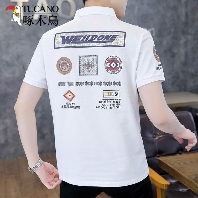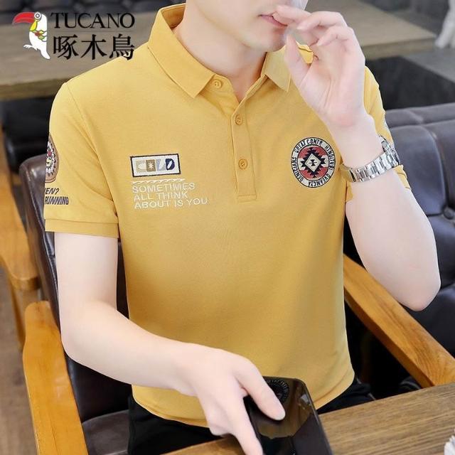 啄木鳥高檔純棉短袖T恤男士夏季薄款翻領POLO新款顯瘦潮流半袖衫