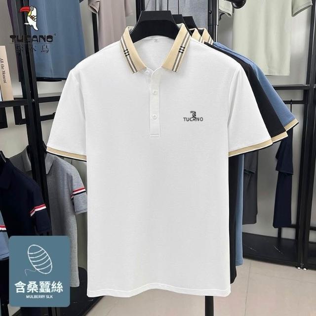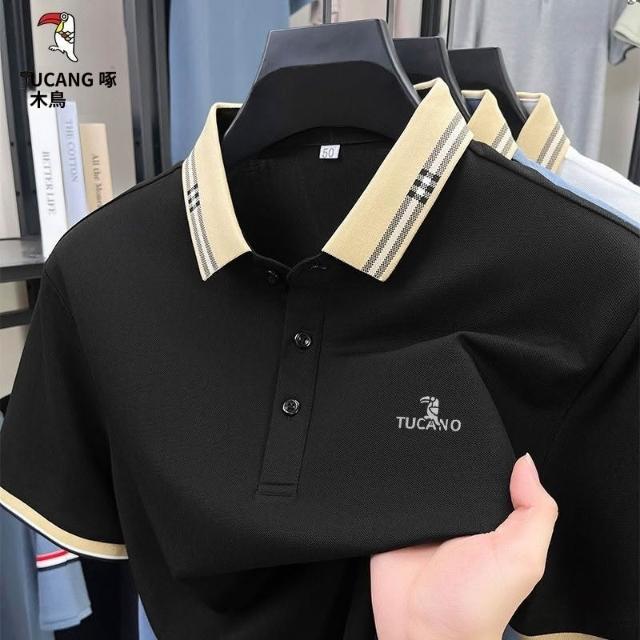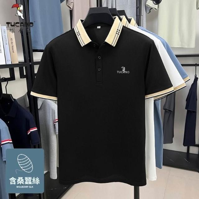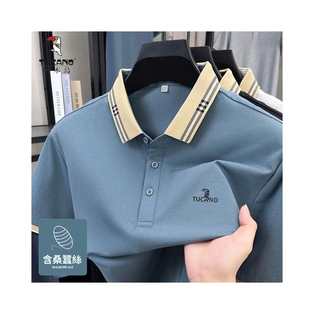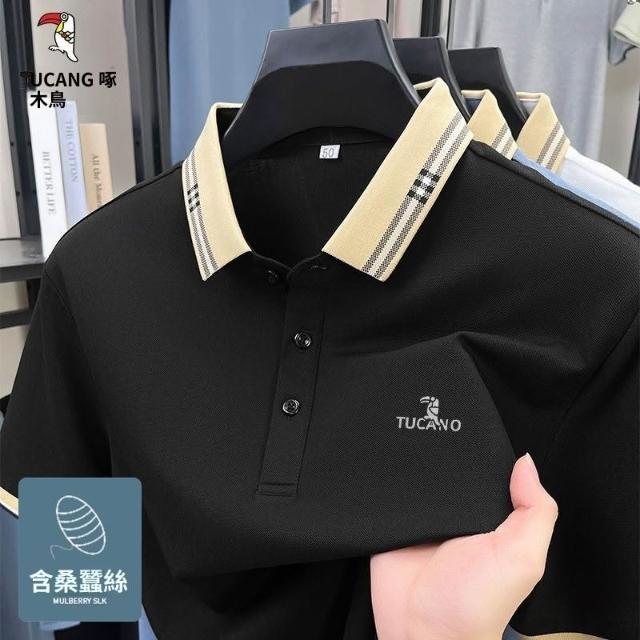 啄木鳥桑蠶絲POLO男士爸爸T恤2026夏季新款中年父親翻領短袖商務
