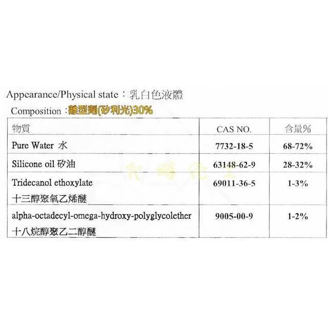 免運 離型劑 4L * 7桶 - 30% 矽利光 水性 矽利康 水性離型劑 水蠟 水性矽油