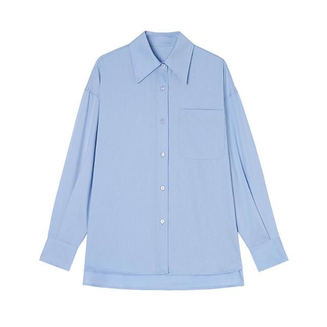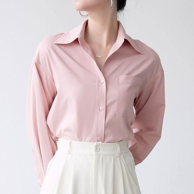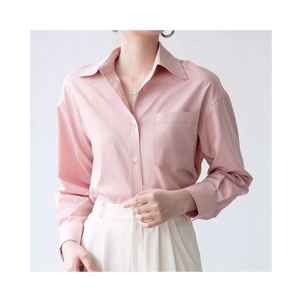 免税 25秋冬基礎款簡約休閑粉色襯衫女寬松顯瘦垂感不易皺免燙百搭襯衣