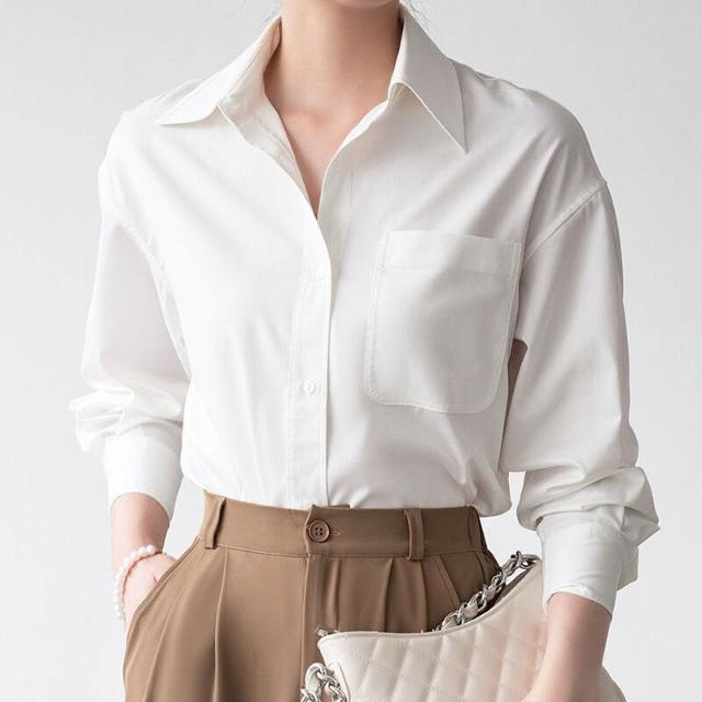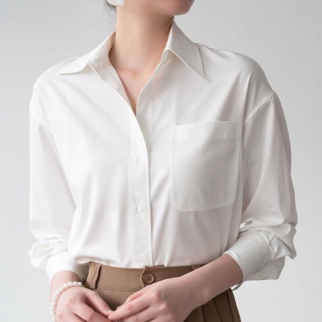 免税 25秋冬基礎款簡約休閑粉色襯衫女寬松顯瘦垂感不易皺免燙百搭襯衣